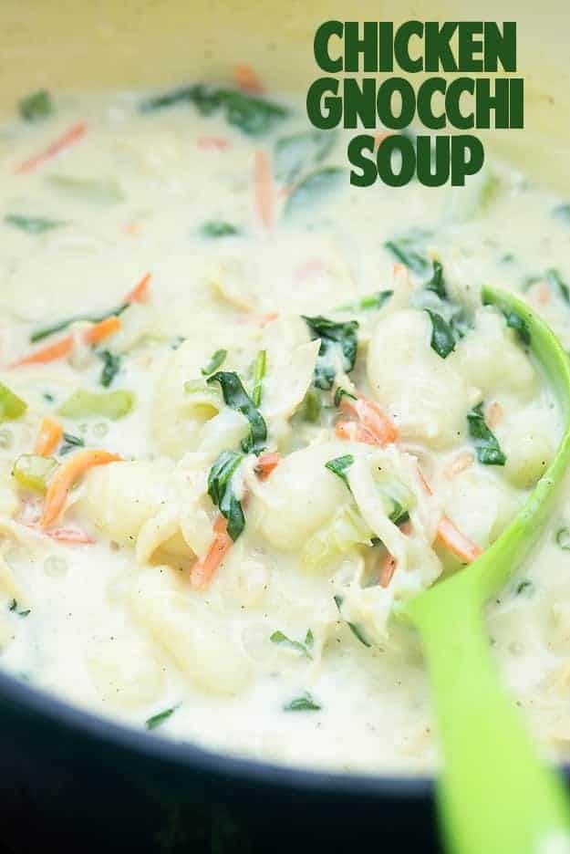 This Chicken Gnocchi Soup recipe is perfect for a quick weeknight dinner! If you love the Olive Garden chicken gnocchi soup, you have to try this – an excellent copycat recipe! Rich, creamy, and loaded with tender chunks of chicken and pillowy soft potato dumplings!