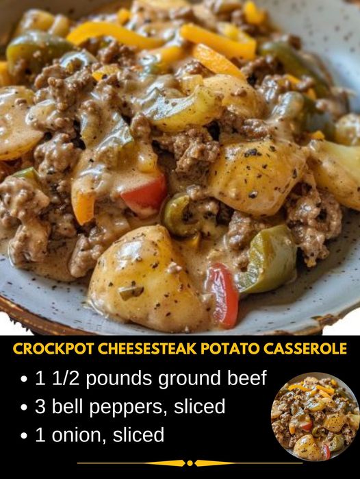 Here’s a recipe for Crockpot Cheesesteak Potato Casserole:
