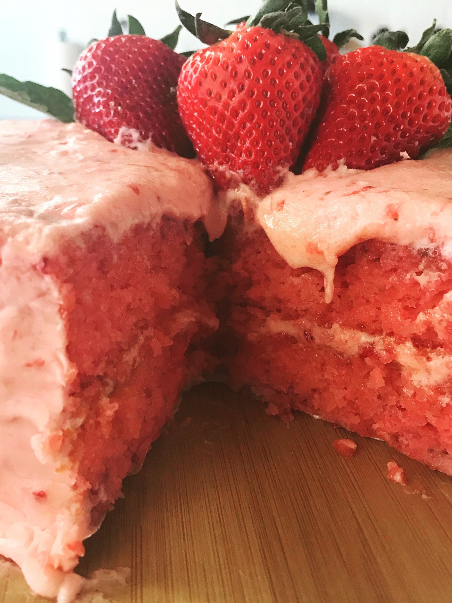I got this strawberry cake recipe from my daughter’s grandmother. It is absolutely incredible.